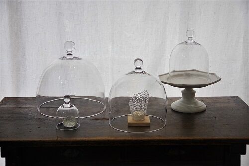 津村里佳さんより、ガラスドームや花器などが届きました。札幌も、桜、水仙、ムスカリ、チューリップなどが咲き、美しいお花を楽しめる季節になりましたね。1点1点個体差がございますが、吹きガラスならではの表情をぜひお楽しみくださいませ。 ガラスドーム…