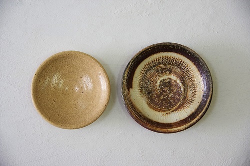 小さな台皿や蓋壺も。焼き締めの表情がかっこいい蓋壺は、お塩などの調味料や梅干しなどにも。