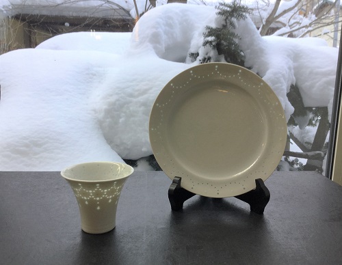 大井寛史さんの陶展も、とうとう明日が最終日となりました。ご遠方の方や、時には吹雪の中でも足を運んで下さる方達、本当にありがとうございます。個展でしかご覧いただけない蛍手のシリーズも、おかげさまでご好評いただきまして、残り少なくはなっておりますが、まだお皿やカップ、鉢などございます。定番のものと合わせてぜひこの機会にご覧くださいませ。