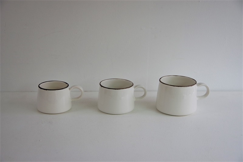 パールシリーズのマグカップも、只今サイズ3種類ございます。家族でサイズ違いで揃えたり、買い足される方も多いマグカップです。